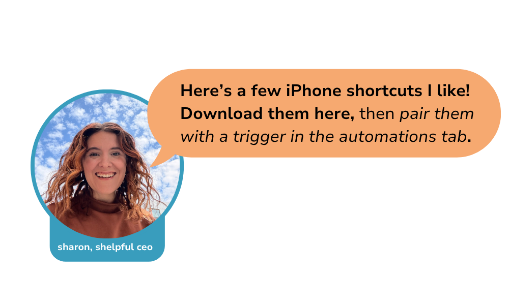 Shelpful has an integration with Apple’s Shortcuts app 🤩. Adding Shelpful to your shortcuts… sprinkles some magic into any automation … because it actually talks back and follows up with you.